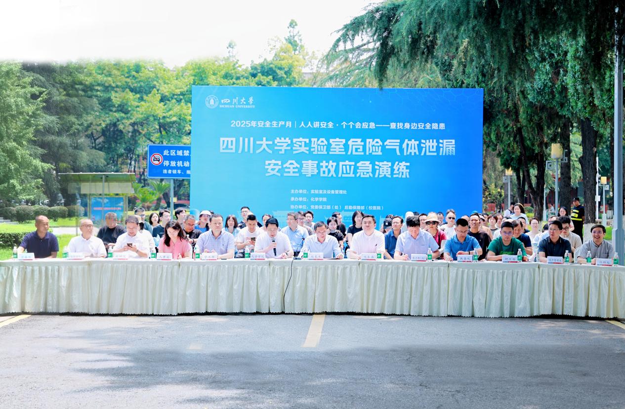 6月27日,学校在望江校区化学馆组织开展了2025年实验室安全应急演练与气体安全专项培训。副校长赵长生出席演练活动并讲话。学校实验室安全环保工作组成员单位负责人、各教学科研单位分管实验室安全工作负责人和师生代表现场参加活动。活动采用“实战还原+校内直播+专家同步解析”的创新模式,吸引全校约4500名师生参与。