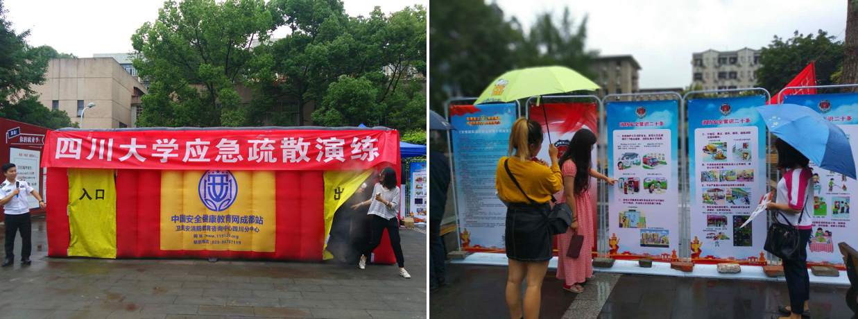 2018年6月15日,由实验室及设备管理处和党委保卫部(处)联合举办2018年“安全生产月”和“安全生产万里行”安全宣传咨询日活动在望江校区学生活动中心、江安校区青春广场、华西校区毛英才烈士雕像前同时开展,各二级单位结合实际也在本单位开展了安全宣传咨询日活动。