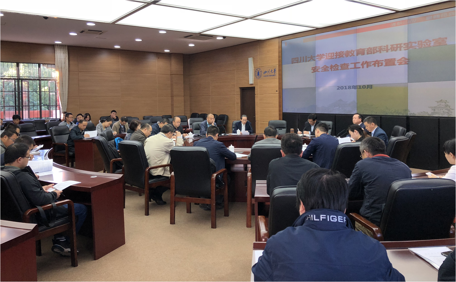 2018年10月10日上午,四川大学科研实验室安全工作布置会在明德楼401会议室召开,党委副书记、副校长李向成和副校长许唯临出席会议。实验室及设备管理处、保卫处、科研院、各学院分管实验室工作的领导、国家重点实验室及省部级重点实验室负责人、校级基础实验教学中心、分析测试中心、实验动物中心负责人和实验室及设备管理处安全科全体成员等参加了会议。会议由实验室及设备管理处主要负责人主持。