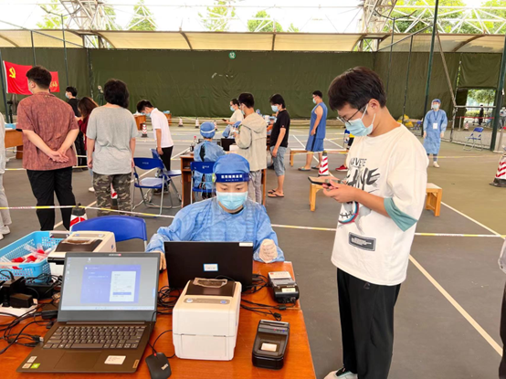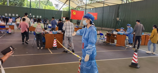 面对来势汹汹的疫情形势,党员同志们冲锋在前,坚定“共产党员先上”的政治自觉,带头冲在疫情防控一线,参加党员志愿服务队,在急难险重任务中作表率、当先锋。部门青年党员杨琴敏、谭翼和入党积极分子杨白雪,积极响应学校党委和机关党委号召,主动领命、冲锋在前,主动投入志愿服务中。在现场,她们身着防护服,为学校师生员工做好查验核酸检测报告、核酸检测点秩序维护、核酸检测信息录入、核酸试管条码录入、信息核查、流程讲解等工作,为疫情防控做出了一名党员应有的贡献。