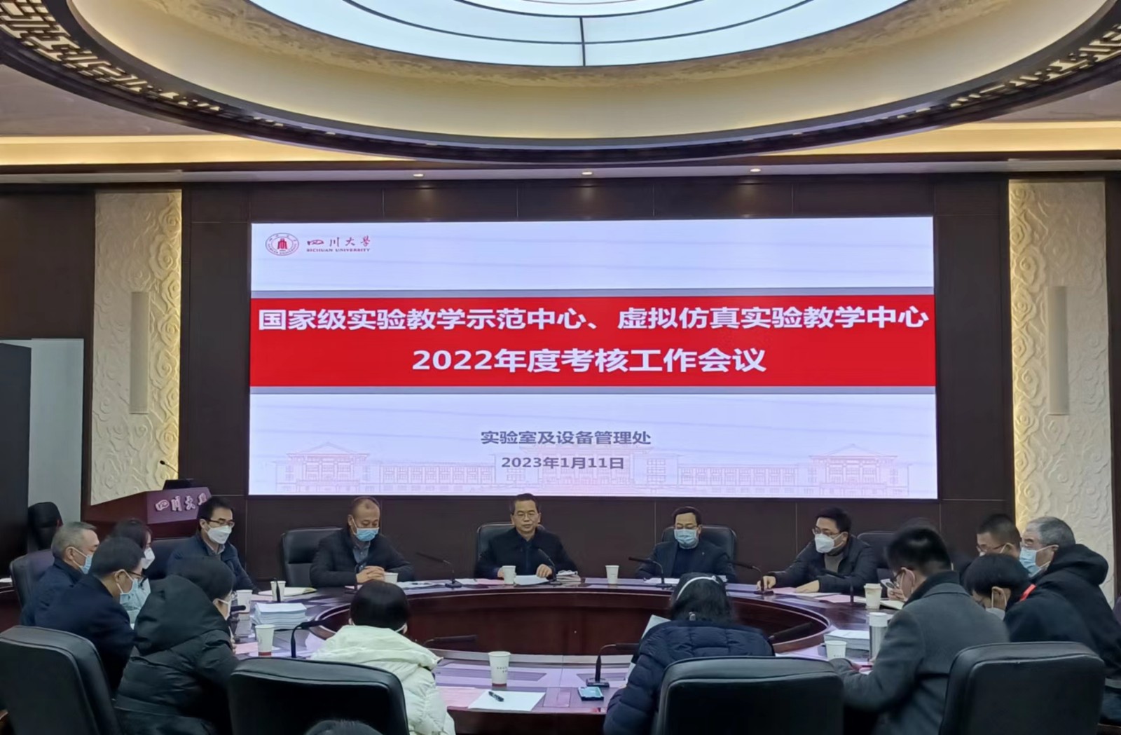 2023年1月11日,四川大学国家级实验教学示范中心、国家级虚拟仿真实验教学中心2022年度考核工作会议在望江明德楼四楼一会议室召开,褚良银副校长、游劲松副校长、学校国家级实验教学示范中心建设与运行管理委员会委员、专家、各国家级实验教学示范中心、国家级虚拟仿真实验教学中心、省级实验教学中心、校级实验教学中心负责人及老师参加了会议。