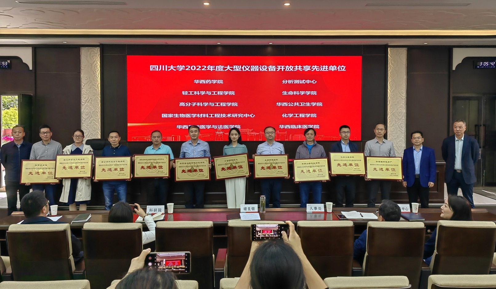 会议首先对在2022年度大型仪器设备开放共享工作中表现突出的单位、机组和个人进行了表彰,分别授予华西药学院等10个二级单位“四川大学2022年度大型仪器设备开放共享先进单位”称号、场发射扫描电子显微镜等20个机组“四川大学2022年度大型仪器设备开放共享优秀机组”称号、张萍等10人“四川大学2022年度大型仪器设备开放共享先进个人”称号。华西药学院尹红梅代表先进单位分享了大型仪器设备开放共享的工作经验和做法。