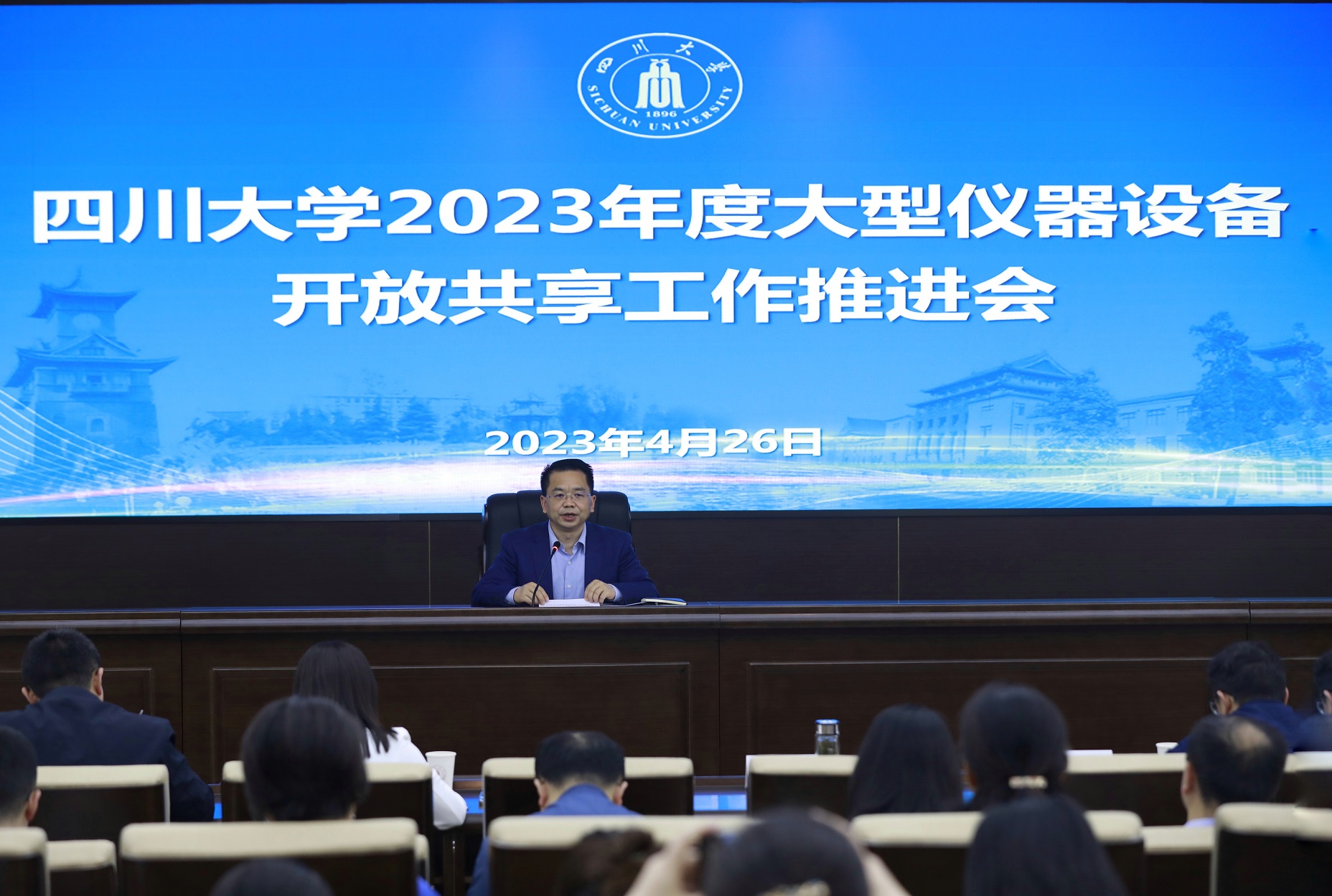 4月26日下午,学校在望江校区明德楼召开“四川大学2023年度大型仪器设备开放共享工作推进会”,副校长褚良银出席会议并讲话。学校相关职能部门、各二级单位分管领导、设备秘书和相关人员参加了会议。会议由实验室及设备管理处处长金永东主持。