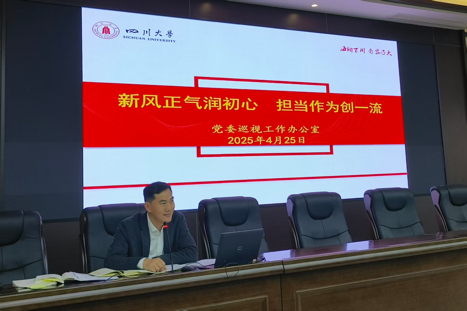 4月25日上午,实验室及设备管理处党支部与审计处、党委巡视工作办公室、社会科学研究处、发展规划处等四部门党支部联合,共同举办了一场以中央八项规定精神及其实施细则为主题的专题宣讲活动。此次宣讲活动在望江行政楼414会议室开展,由巡视办主任管清贵主持并主讲。