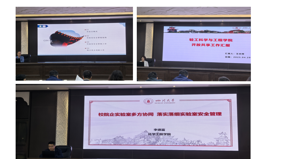 化学工程学院、华西临床医学院分享了实验室安全管理和环境保护实践经验,轻工科学与工程学院对大型仪器设备开放共享管理作了经验分享。