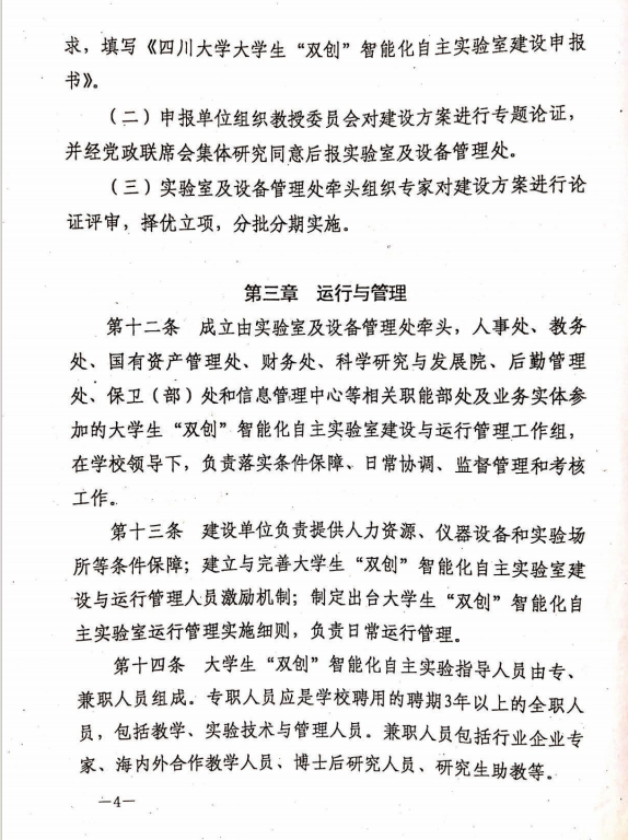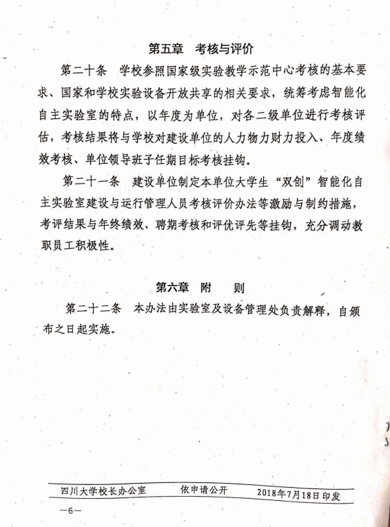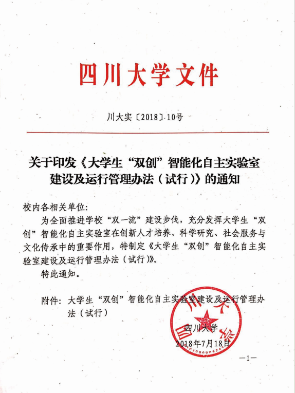 川大实〔2018〕10号《大学生“双创”智能化自主实验室建设与运行管理办法(试行)》
