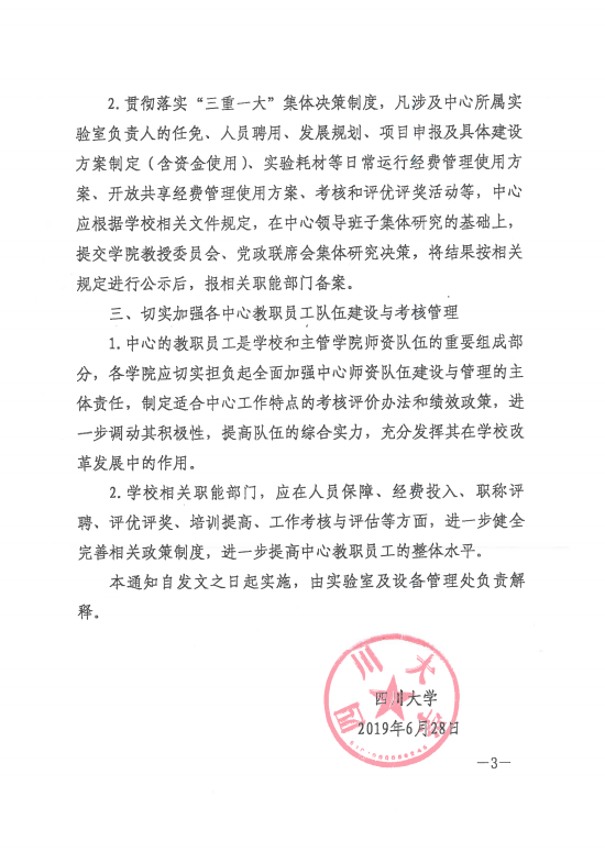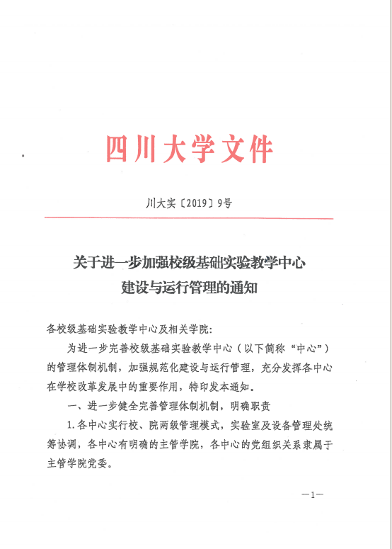 川大实〔2019〕9号《关于进一步加强校级基础实验教学中心建设与运行管理的通知》
