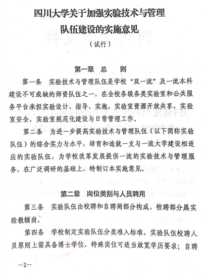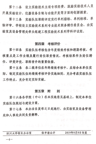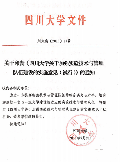 川大实〔2019〕13号《四川大学关于加强实验技术与管理队伍建设的实施意见(试行)》